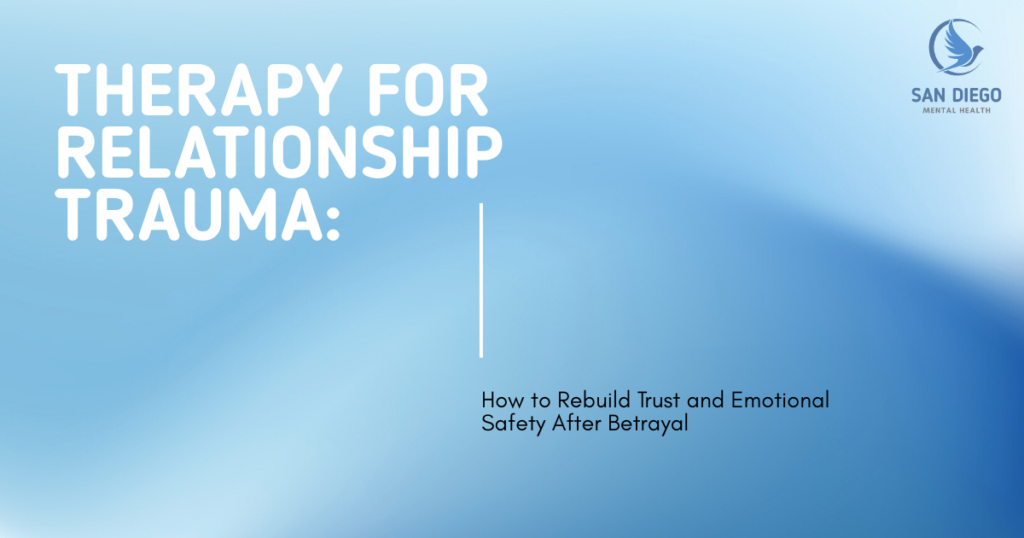 San Diego Mental Health provides specialized therapy for relationship trauma, attachment wounds, and the trust and intimacy challenges that follow significant relational injury. Our experienced clinicians work with individuals navigating the aftermath of betrayal and with couples committed to repairing and rebuilding their relationship from a place of genuine clinical expertise. Treatment is individualized, evidence-based, and built around the specific dimensions of each client’s experience—because relationship trauma is deeply personal, and recovery deserves the same level of care.